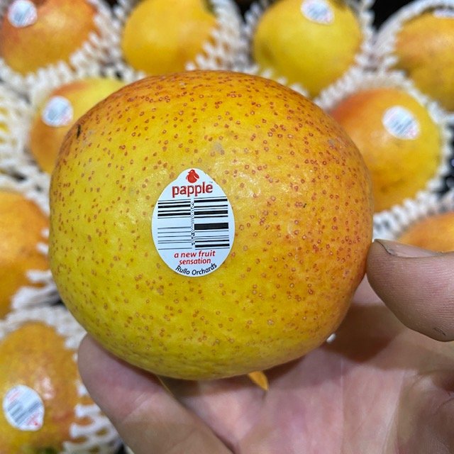 Description: Papple is a unique cross between a Japanese and a Chinese Pear. It has resulted in a Super sweet, crunchy and juicy Pear that is very addictive. Great snack at work or doing sport. Thirst quenching.